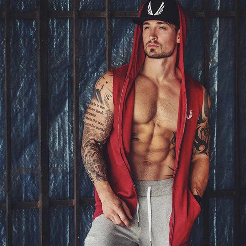 Review Top Muscle Fitness Brothers Sleeveless Hooded Waistcoat MEN'S Sports Running Training Elasticity Casual
