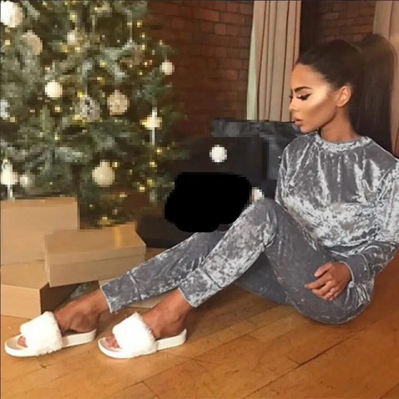 2018 2019 New Winter Spring Women Velvet Two Piece Set Solid Fashion O-Neck Hoodies And Pencil Pant