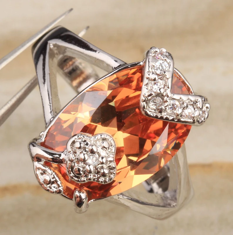 Elegant Champagne Morganite Zircon 925 Sterling Silver Solitaire Ring Size 6 / 7 / 8 / 9 S1972