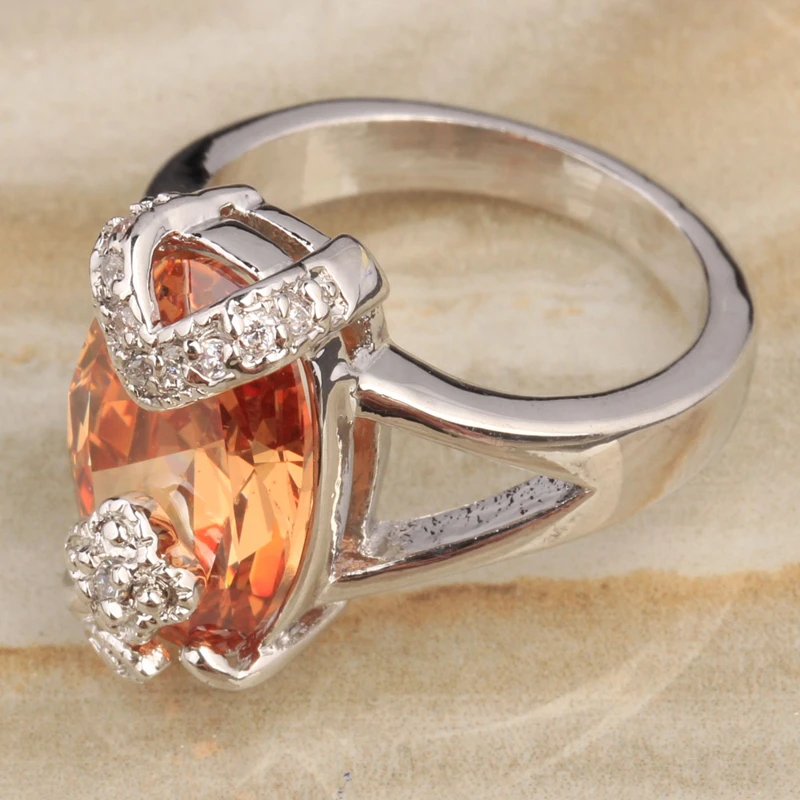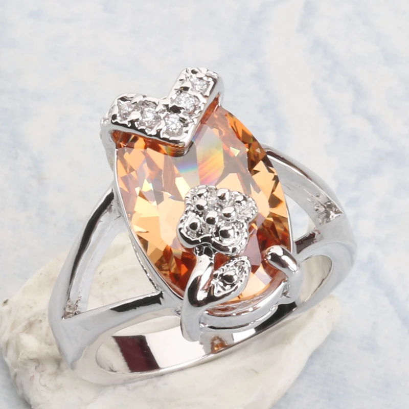 BEST Elegant Champagne Morganite Zircon 925 Sterling Silver Solitaire Ring Size 6 / 7 / 8 / 9 S1972